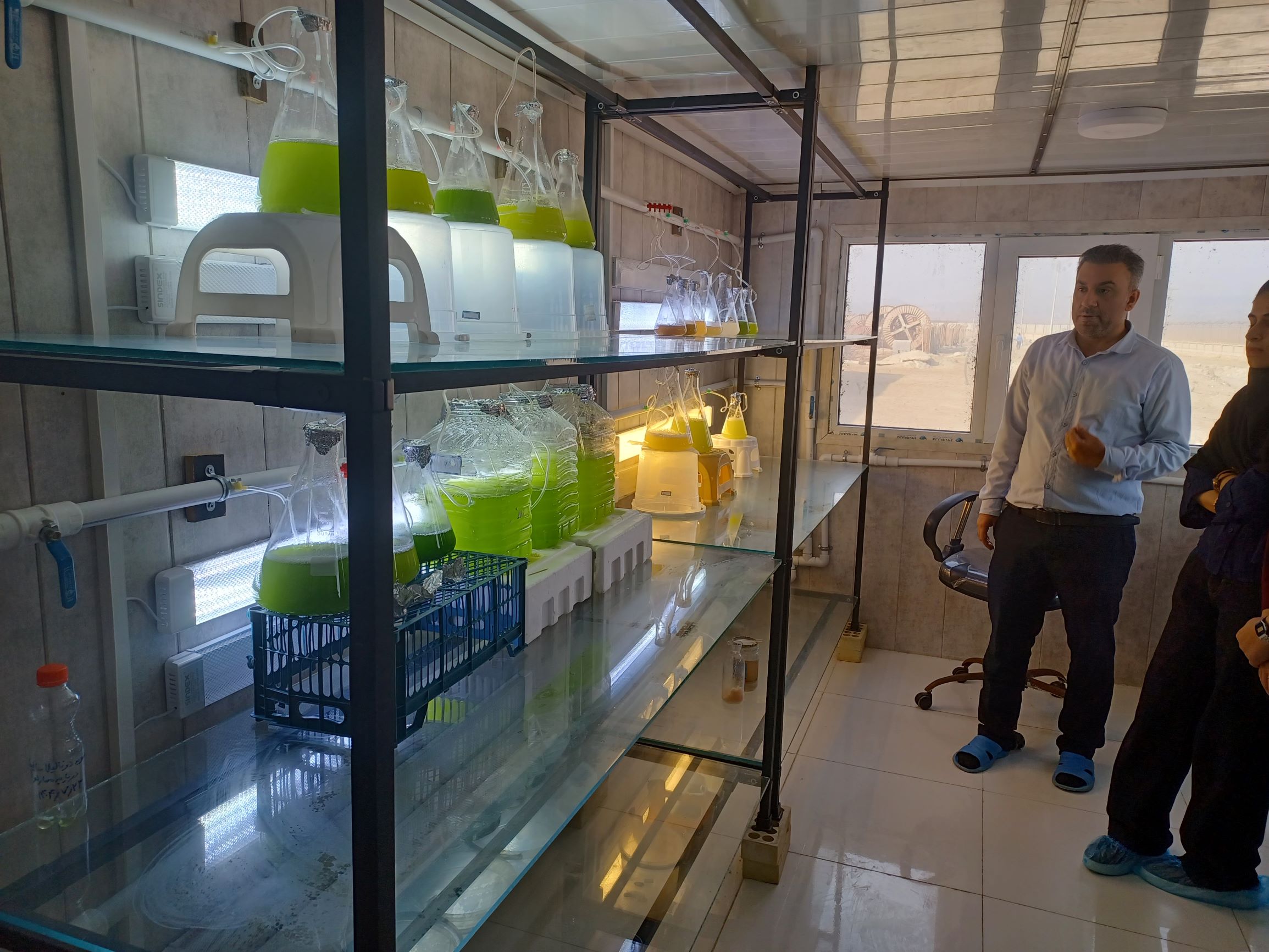 یکی از بخش‌های قابل‌توجه این بازدید، ارائه توضیحاتی درباره طرح نوآورانه شرکت در استفاده بهینه از پساب شور تولیدی بود. شرکت مهندسی توسعه آب آسیا در راستای توسعه پایدار و کاهش اثرات زیست‌محیطی، در حال راه‌اندازی سایت پرورش جلبک‌های صنعتی برای تولید رنگدانه‌های باارزش است. مدیریت بخش تحقیق و توسعه این طرح مهم و دانش‌بنیان برعهده جناب آقای دکتر سوری‌نژاد، استاد و عضو هیئت علمی دانشگاه هرمزگان است که با هدایت ایشان، پروژه‌های مطالعاتی و آزمایشگاهی مرتبط با گونه‌های جلبکی، استخراج رنگدانه‌ها و ارزیابی پتانسیل اقتصادی این فناوری در حال انجام است.