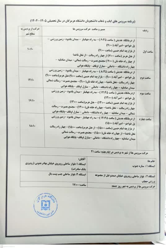• برنامه سرویس های ایاب و ذهاب دانشجویی